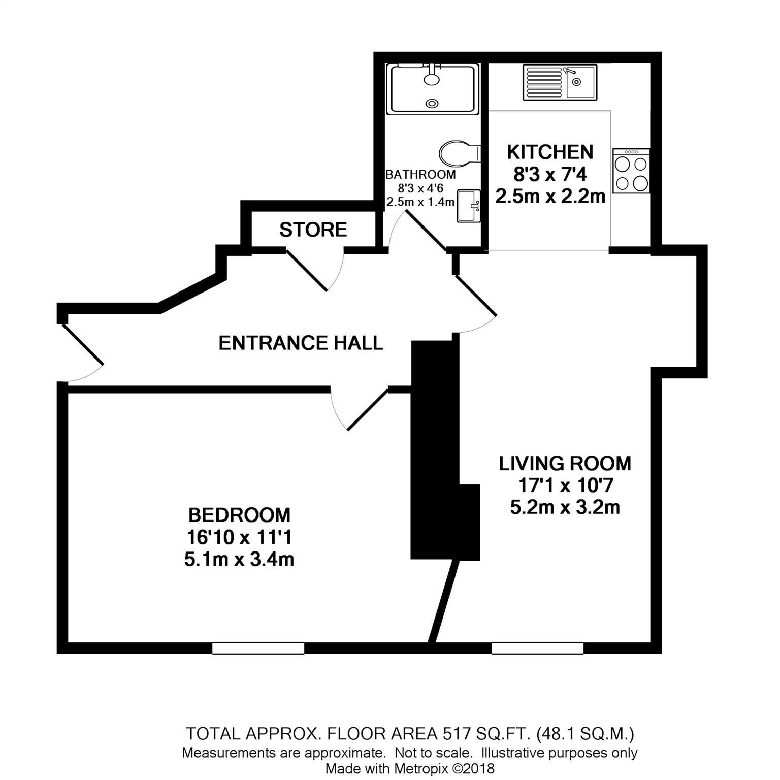 Space is certainly what you have from this one bedroom apartment, with wide hall and storage cupboard. The open plan kitchen and lounge areas are separated into defined areas, with the kitchen having a brand new contemporary kitchen, which include a fridge, oven and hob with extractor and washer/dryer. A Velux window allows natural light to flood in while you’re cooking. The lounge area has sash window, which adds to the character of this individual apartment. The double bedroom is an impressive 16'10 x 11'1 allowing plenty of room for wardrobe and a dressing area, to finish off this thoughtful design there is a shower room with light portal and heated towel rail. Each apartment has access to lockable bin and bike store, also own phone entry system.
