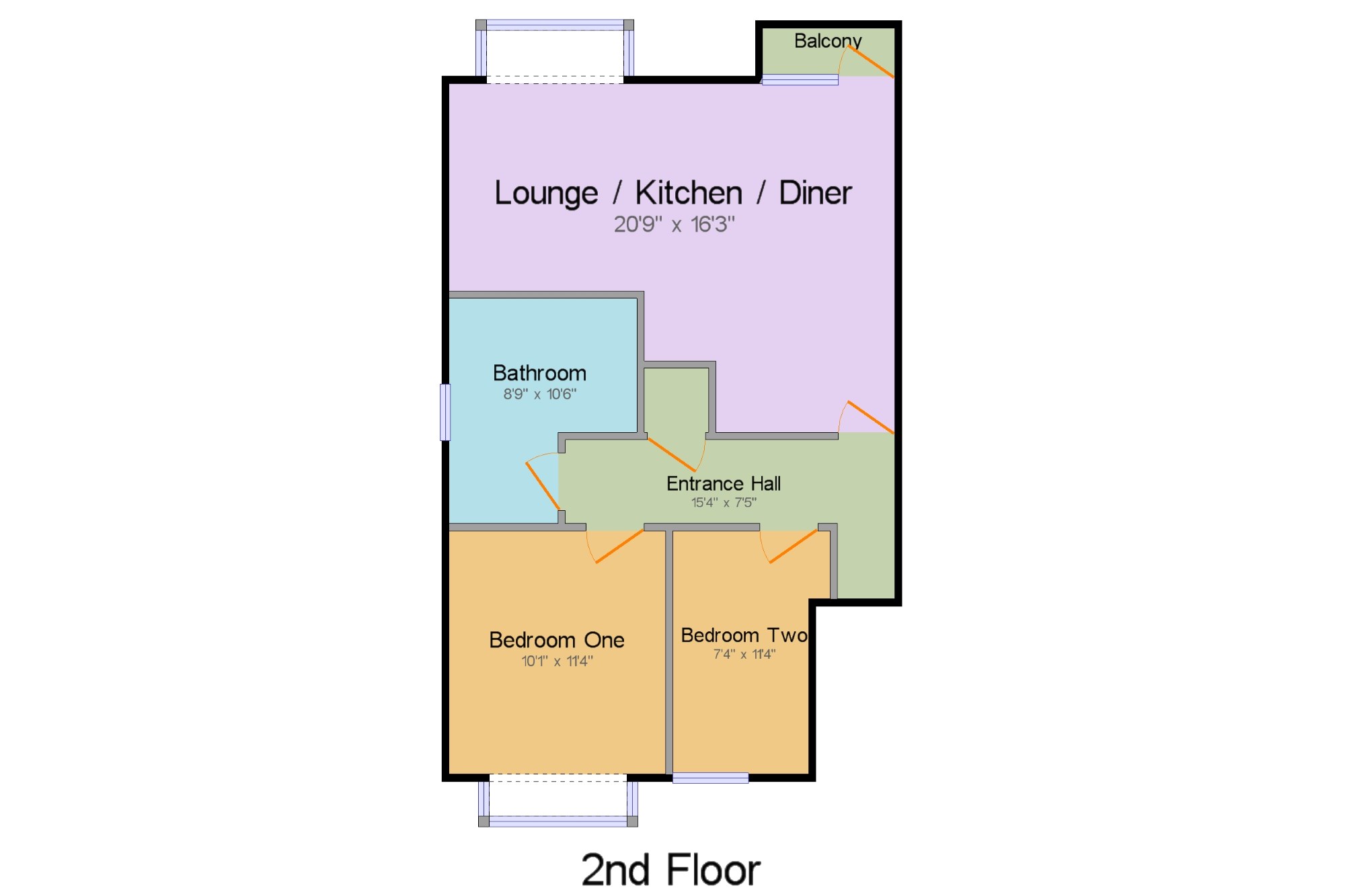 Kitchen Diner 20'9" x 16'3" (6.32m x 4.95m). UPVC back double glazed door, opening onto a balcony. Double glazed uPVC bay window facing the rear. Electric heater, vinyl and carpeted flooring, ceiling light. Fitted units.