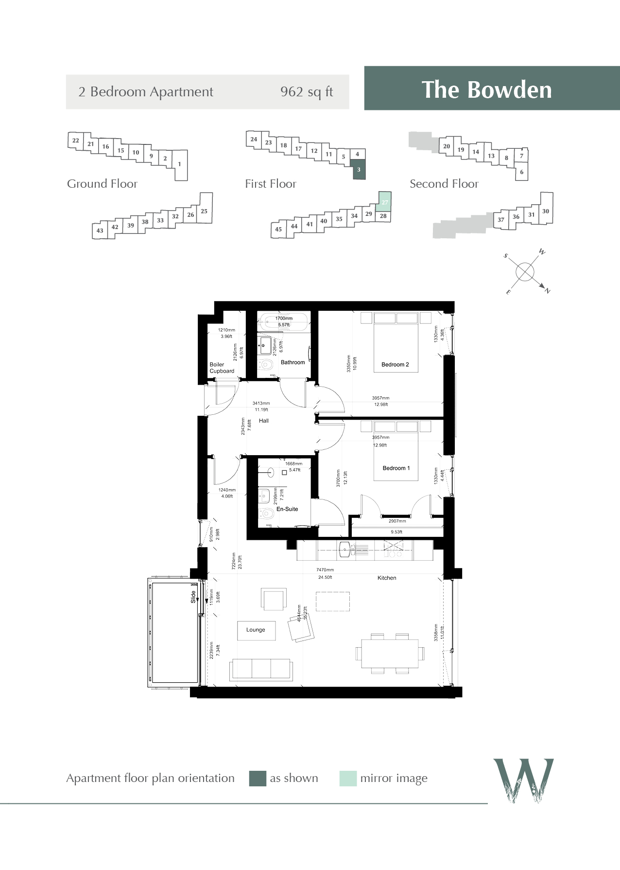 'The Bowden' is a brand new 2 bedroom first floor apartment, built to high quality specifications and comprising: Automated apartment building entrance with video and audio door entry with corresponding Tunstall console located in entrance hall of the apartment for added security. Entrance hall leading to large open plan living area with floor to ceiling double aspect windows and private balcony overlooking the communal gardens and open countryside beyond. Fully fitted light oak kitchen with integrated Neff appliances, durable Silestone worktops and full height backsplash. Moveable central island unit. LED lighting underneath wall units. Master bedroom has integrated wardrobes and luxury en-suite shower room with Porcelanosa sanitary ware and tiling. The second bedroom is also a double size. The family bathroom offers a bath with shower attachment, and luxury fittings including integrated vanity cabinet with mirrored doors and lighting. Further features include: Light oak engineered wood flooring to the living areas, 80% wool carpets in complimentary tones to the bedrooms, energy efficient underfloor heating, residents parking. Apart from the kitchen fittings described, this apartment is sold unfurnished.