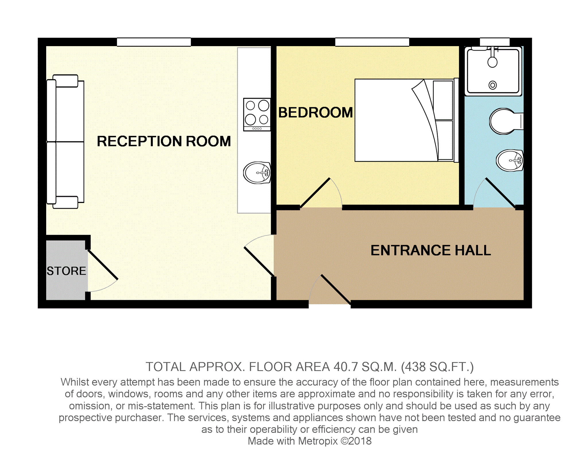 A lovely sunny room with two windows overlooking the front of the property offering open views. The Kitchen area offers a range of modern base and walls units with complimentary work surfaces and tiled surround. Integrated appliances include a electric halogen hob with extractor hood, electric oven and integrated washing machine. A good sized storage cupboard provides excellent pantry space. Laminate wooden flooring and window blinds. Ample space for free standing furniture.
