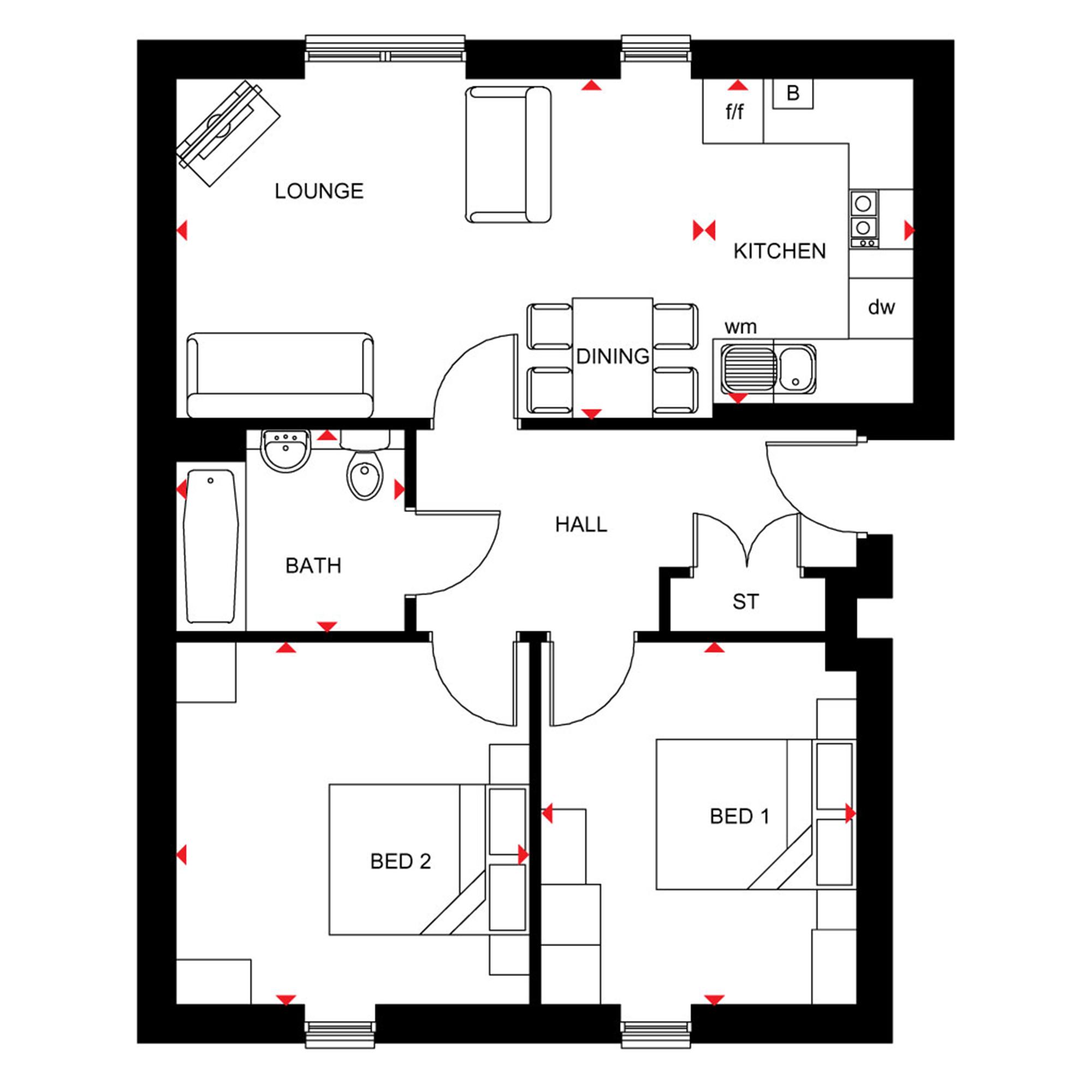 The Wilmut welcomes you through a spacious hallway featuring a useful storage cupboard and a family bathroom. The open-plan living space incorporates a kitchen, dining, and lounge area. With plenty of natural light coming in through two separate windows, this room is perfect for entertaining family and friends. Across the hall you will find two double bedrooms to complete this fantastic apartment.