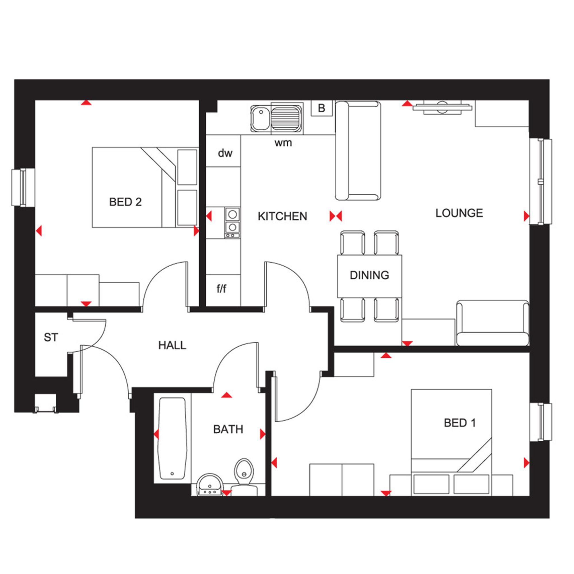 The bright open-plan living area complete with kitchen, dining and lounge area makes this room a great space for socialising with friends and family. There are two generously sized double bedrooms off the hallway, as well as a storage cupboard and a family bathroom for all to share.