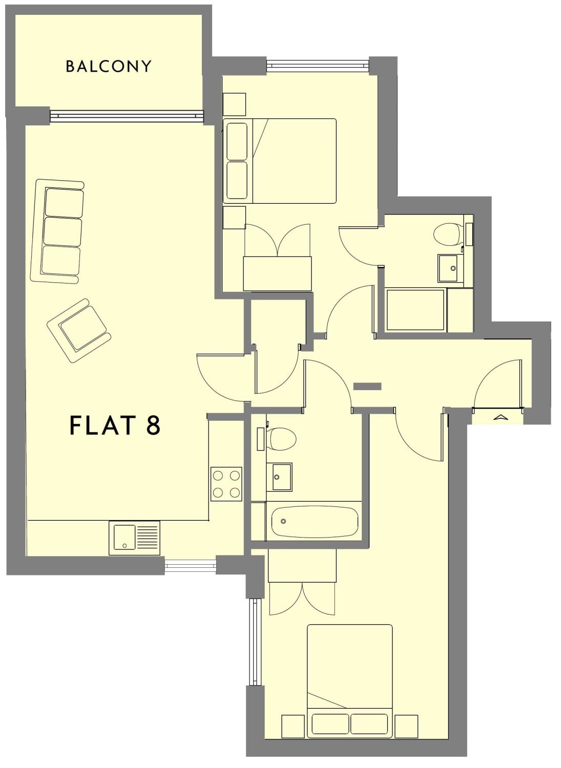 Apartment 8 is a spacious first floor, two bedroom luxury apartment with an en-suite shower room, open-plan living/dining/kitchen room with doors out to a generous balcony overlooking woodland. This apartment also benefits; allocated under-croft parking and under-floor heating.