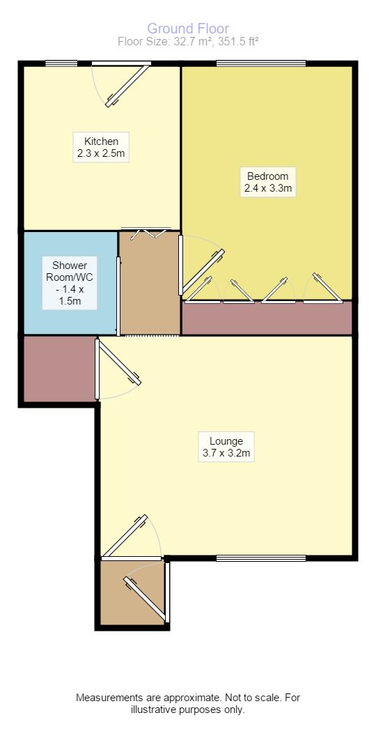 Well presented ground floor flat which is in move-in condition and ideal for first-time buyers and investors. The accommodation comprises; entrance vestibule, lounge with fitted storage cupboard, modern shower room / WC with electric shower in cubicle, 1 double bedroom with ample fitted storage and fitted kitchen with selection of base/wall mounted units, integral electric oven / hob, fridge/freezer and microwave. Externally there are front, side and rear gardens with patio area and garden shed included. Allocated parking space and visitor parking available. EPC Rating = Band E.