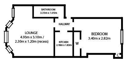 The main door of the property leads to a compact reception hall with access off to all apartments. The lounge is to the front with three light bay window formation and has a recess area off, again with a front facing window from which there are tree lined aspects. All around there is decorative coving. The internal kitchen has a range of wall and base mounted storage units, matching work surfaces incorporating an inbuilt stainless steel sink unit and tiled splashbacks. The bedroom is to the rear overlooking the south facing back court, and has a fitted wardrobe and shallow cupboard off.