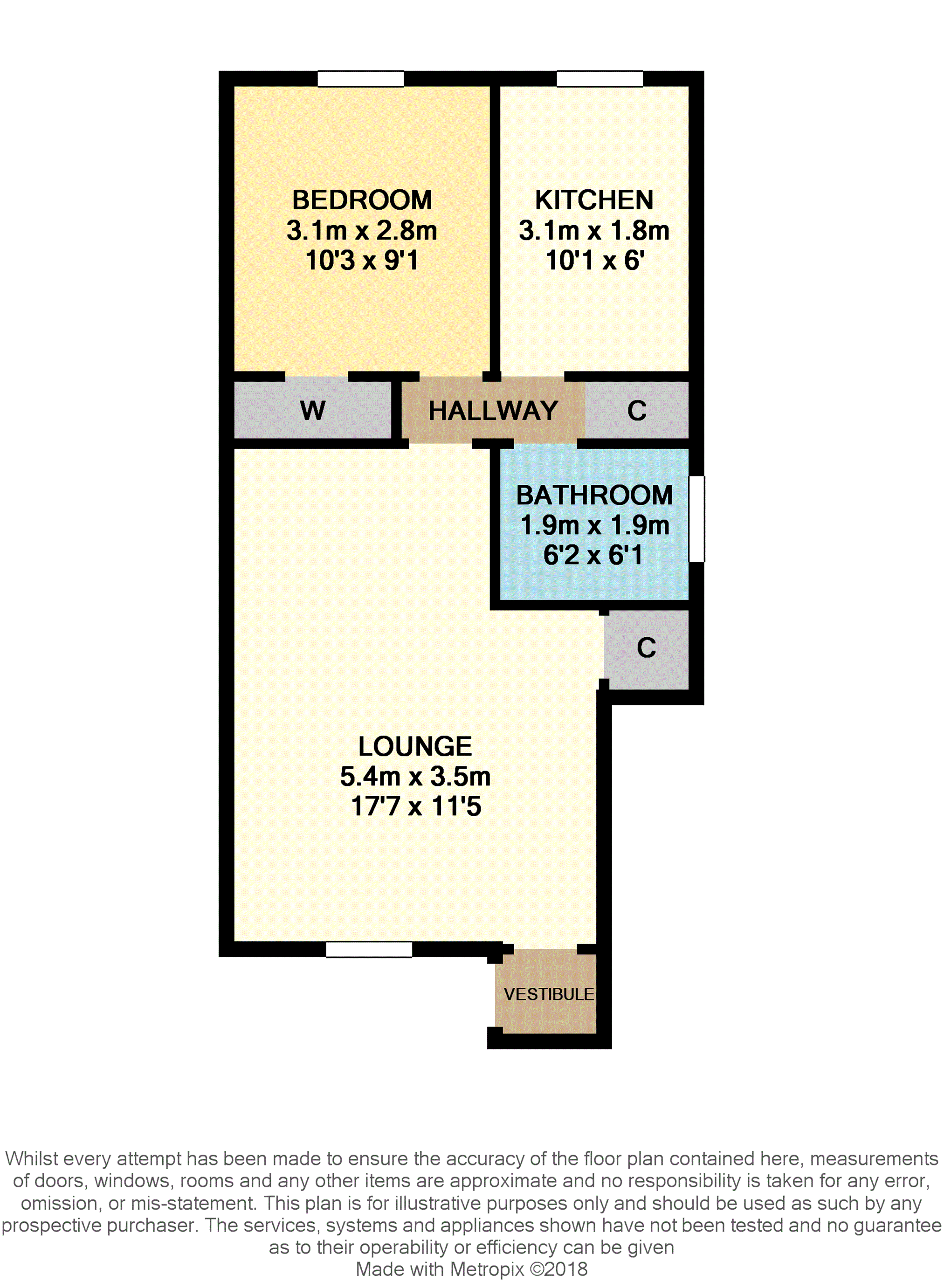 Property comprises front door to vestibule, door to lounge, kitchen, bathroom and double bedroom.
