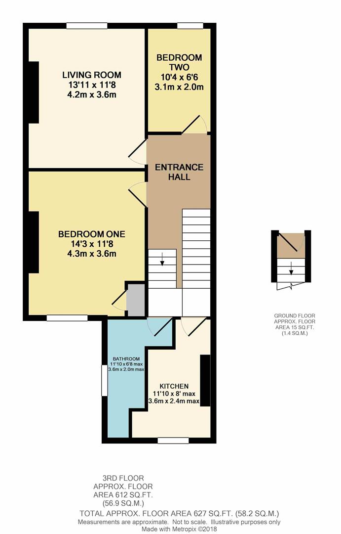The accommodation comprises: First floor private entrance leading to a spacious landing, living room with fitted storage and feature fireplace, kitchen with integrated hob and oven, two bedrooms and house bathroom.