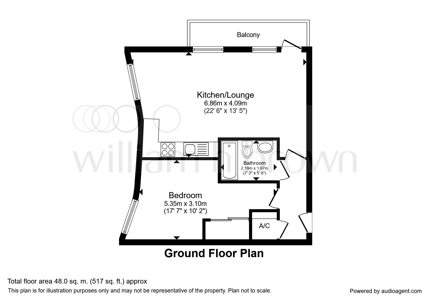 Bedroom: 17' 7" x 10' 2" ( 5.36m x 3.10m )