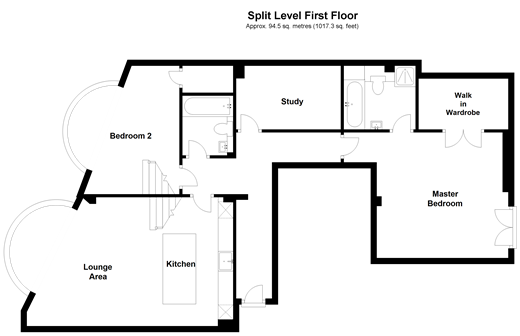 You will be greeted by a pleasant hallway, time to kick off your shoes and start to relax after a busy day at work. The open kitchen/lounge area is the hub of the home and with bay window allowing lots of light in is a pleasant space. The kitchen of course is modern and with a centre island incorporating the hob you can cook all your culinary delights and talk to friends as you do so. The second bedroom in this home is currently used as a dining room but also has great storage. As you travel towards the master bedroom you will also find a good size study for anyone looking to work from home. There is also a nice size family bathroom off the hallway.