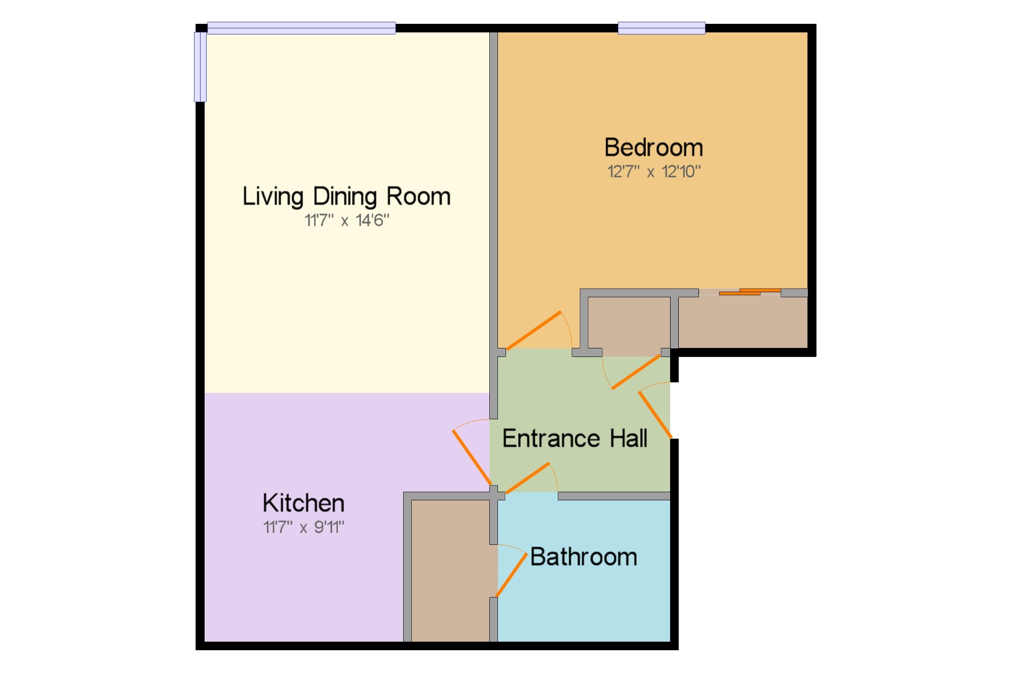Entrance Hallway x . With doors leading to the open plan kitchen dining living space, bedroom, bathroom and storage cupboard.