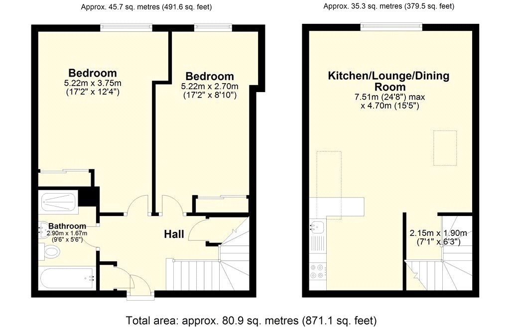 On the first floor you have the open plan living experience with fantastic fitted kitchen and lounge/dining area. On the lower floor are the two double bedrooms which benefit from built in wardrobes with motion sensor lighting.