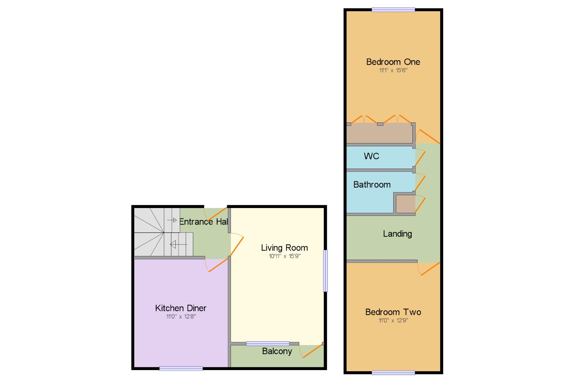 Bedroom Two11' x 12'9" (3.35m x 3.89m). Window to front and wall mounted electric heater.