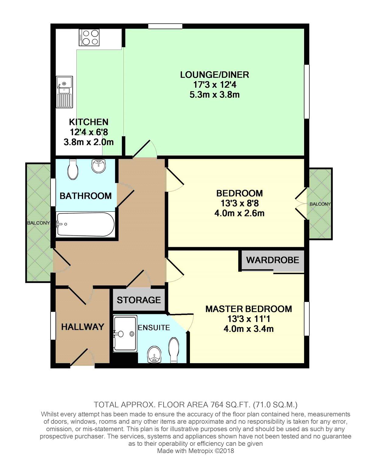 Both bedrooms are spacious doubles, the master bedroom offers mirrored wardrobes and a three piece ensuite, while bedroom two benefits from a balcony. In addition, there is a three-piece house bathroom.