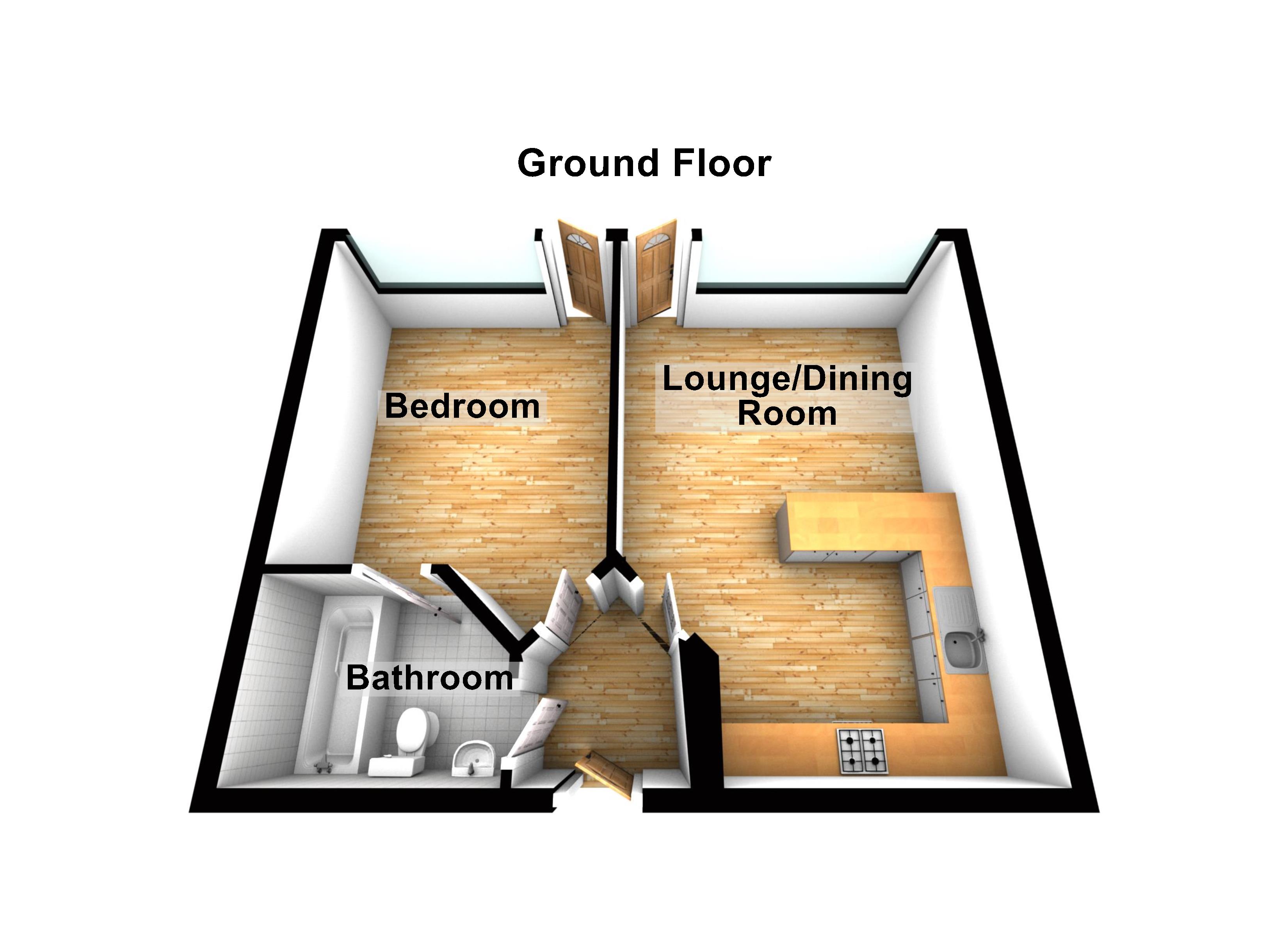Open plan lounge/kitchen 18' 9" x 13' 6" (5.74m x 4.14m) Open plan lounge and kitchen with balcony access, laminate floor, full height window, electric wall heater, integrated appliances to kitchen with tiled floor, plumbing for dishwasher.