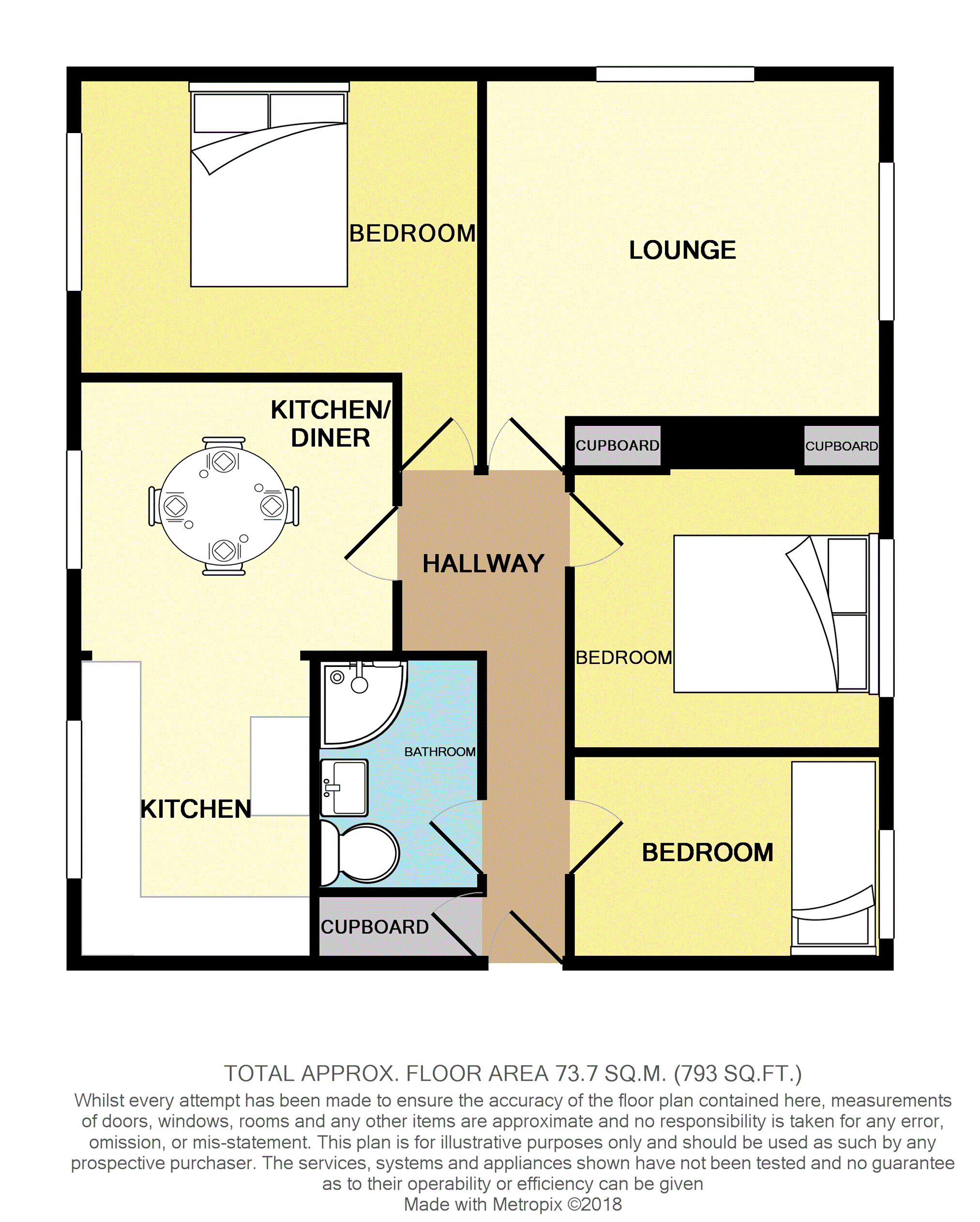 Front aspect window, wall mounted radiator and two storage cupboards.