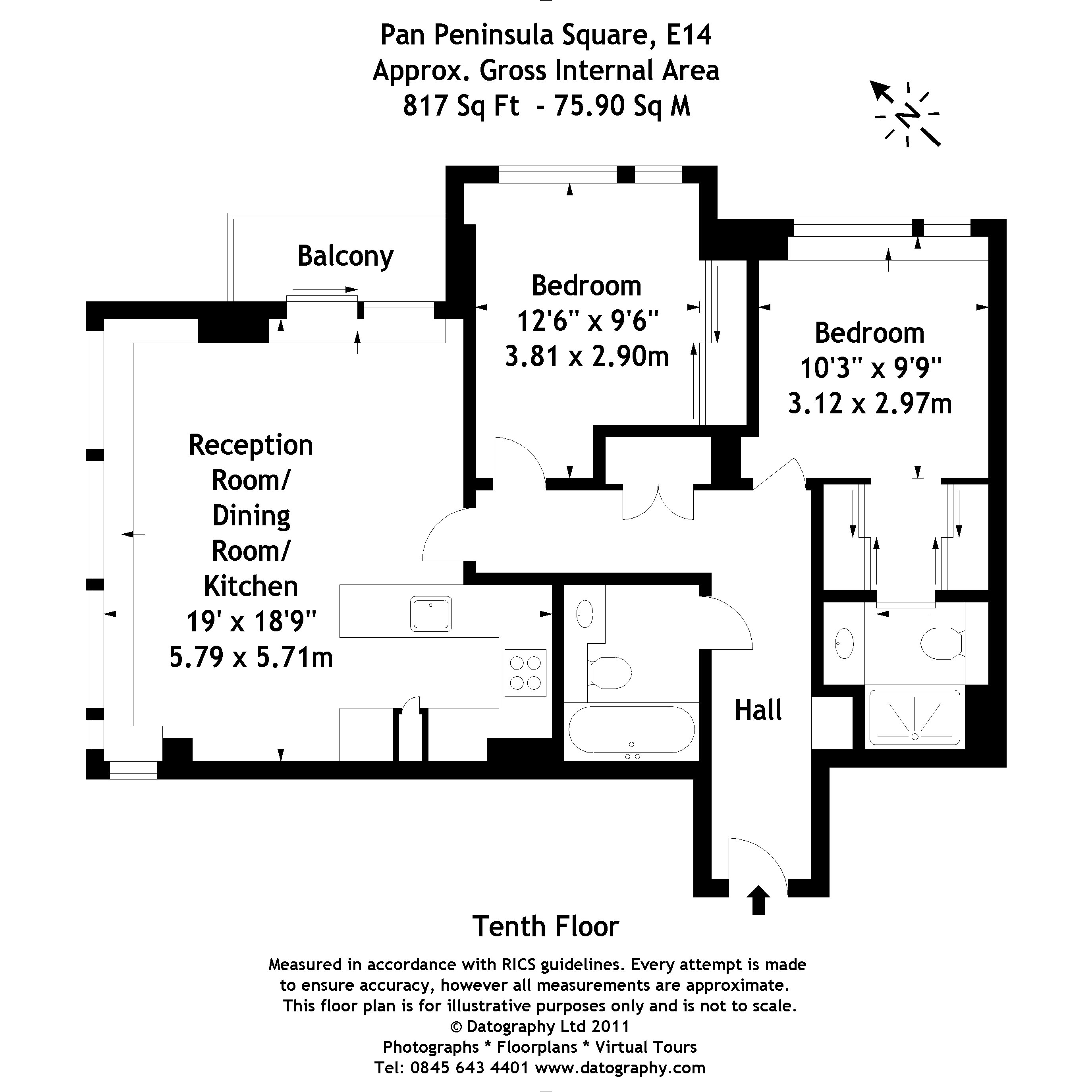 A two bedroom, two bathroom apartment on the 10th floor of Pan Peninsula's West Tower. This apartment includes an inviting living and dining space, fitted kitchen with integrated Siemens appliances, floor-to-ceiling windows, wood flooring, master en suite, stylish bathroom suite and a private balcony.