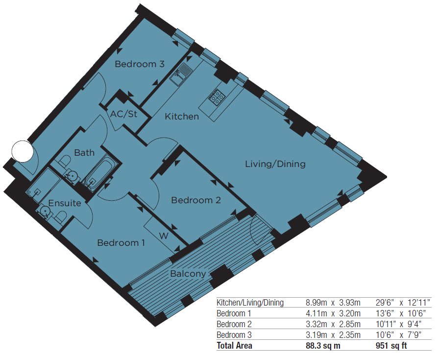 A 951 sq. Ft. 3 bedroom / 2 bathroom apartment located on the 18th floor overlooking the river thames with the benefit of a private balcony located in the heart of poplar with this fantastic new development of manhattan plaza.