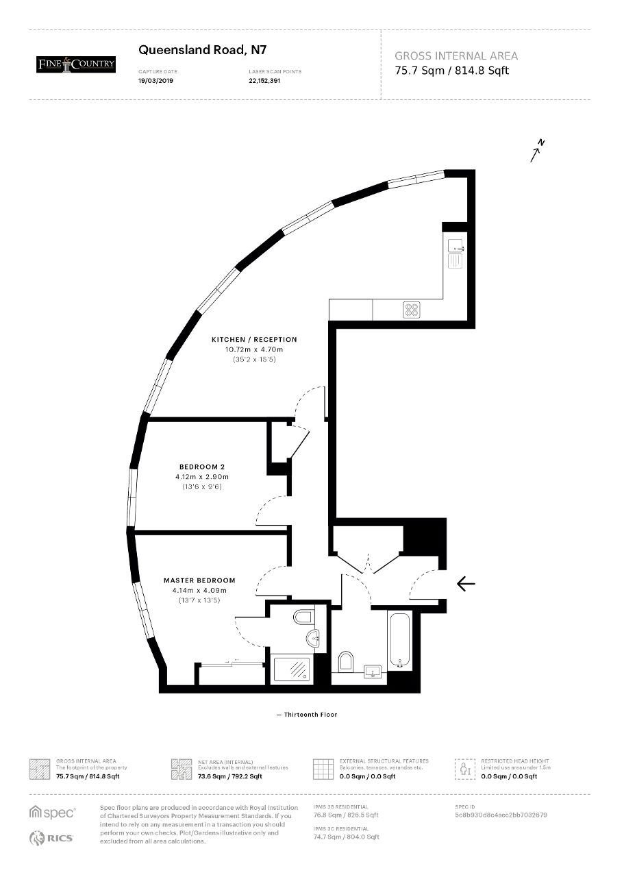 Spanning an impressive 814 Sq Ft (75.7 Sqm) the apartment offers a view directly inside the emirates stadium and boast a striking obtuse angled living area giving residents a full undisturbed view of London. Further comprising two bathrooms including en-suite to master, high specification and fully integrated kitchen with dining area, large TV lounge space, off street parking for one car, 24 hour porter and residents gym.