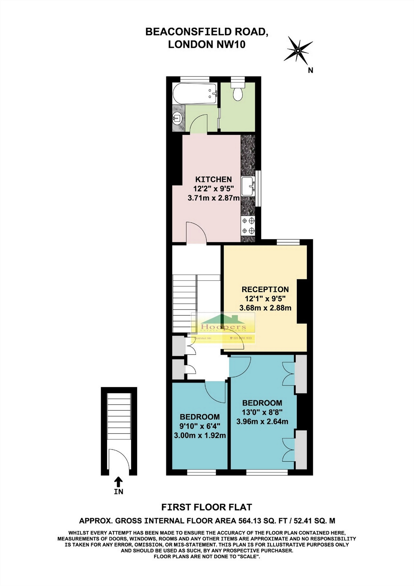A first floor flat converted from a centre terrace Victorian house comprising two double bedrooms