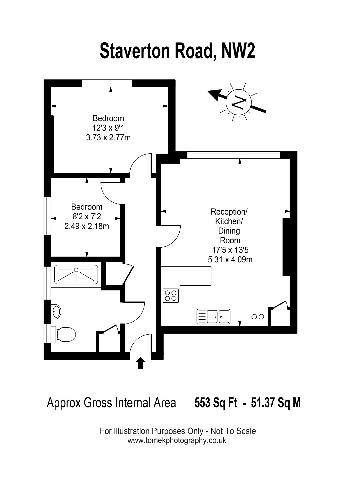 The property has been recently refurbished offering 553 sq ft of living space and boasts two bedrooms, one family bathroom, a large contemporary open plan kitchen and reception.