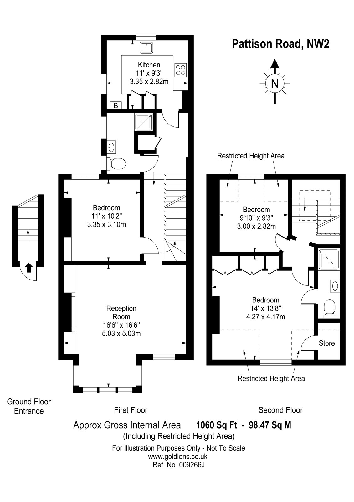 A superb interior designed three double bedroom apartment (1060 sqft/98.47 sq m) arranged over the first and second floors of this charming period residence, found on a quiet residential street. This tastefully refurbished apartment which is entered on the raised ground floor, offers well-proportioned living space featuring a bay fronted reception room, separate kitchen, principal bedroom with en-suite shower room, two further bedrooms and shower room. Pattison Road is conveniently located for an abundance of amenities and transport links on Finchley Road, together with access to Hampstead Heath and the Village