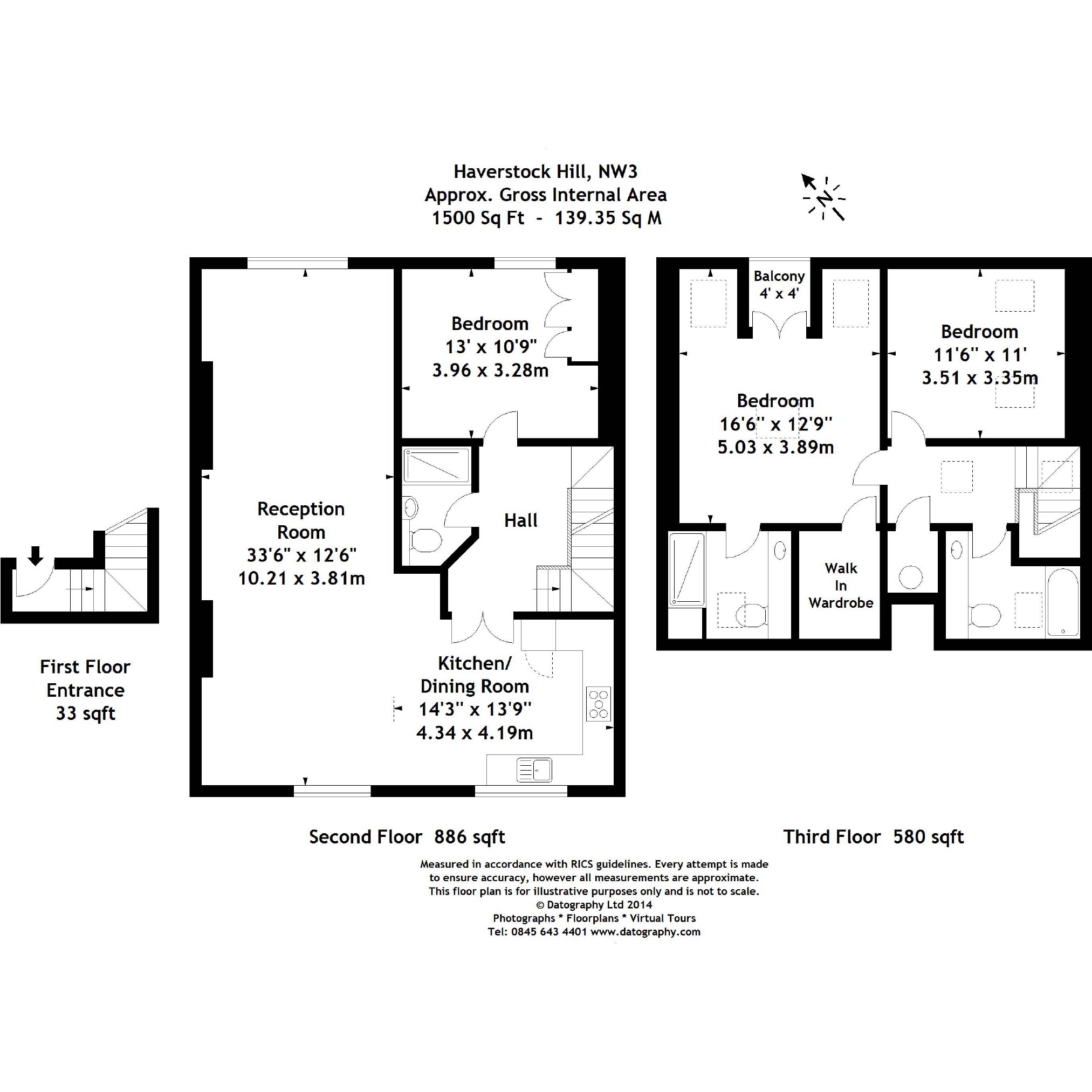 Fantastic 3 double bedroom, 3 bathroom top floor maisonette - Magnificent 33' reception spanning length of building - Entire 2nd & 3rd floors - Set in impressive part stucco period conversion - Comprising a generous 1500 sq ft - Semi open plan 14' kitchen/diner - Extremely bright and spacious - 16' master bedroom with - Walk-in wardrobe, en suite shower room and access to balcony - 2 further double bedrooms and 2 bathrooms - Lease - 125 years from February 2005 - Moments from all Belsize Park amenities