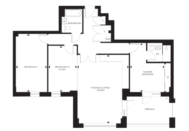 Offering versatile living accommodation, there's the possibility to create an additional third bedroom or useful study with the installation of a stud wall, giving you the flexibility to style your new home to best suit your needs. The impressive master bedroom boasts built-in wardrobes and stylish ensuite.