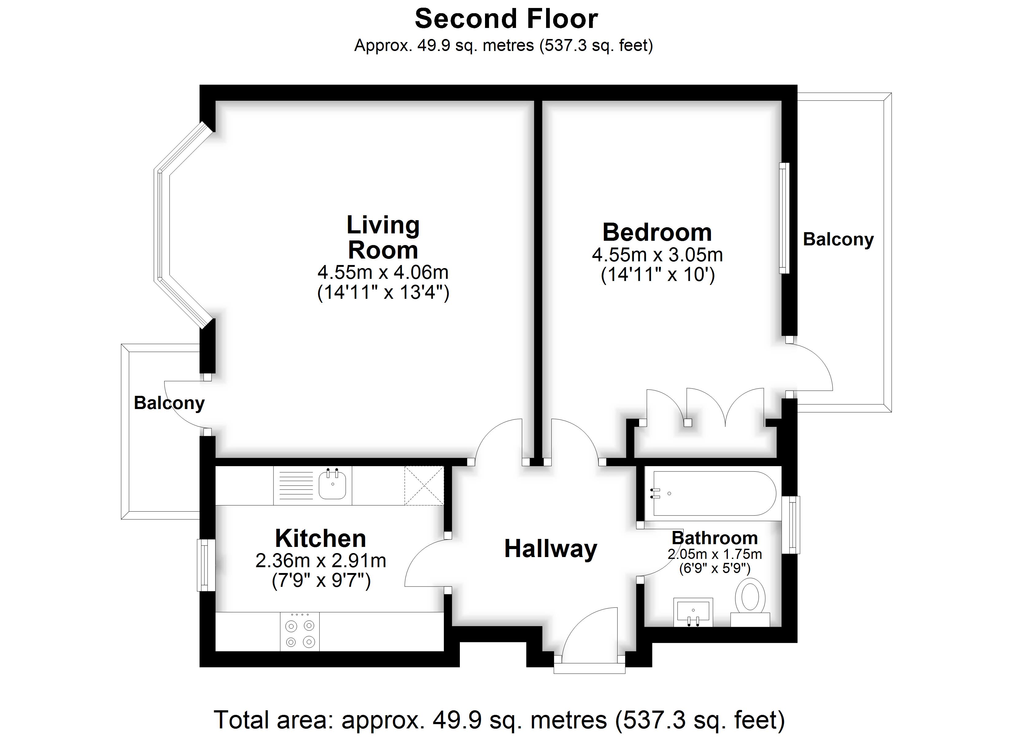 Offering 1 double bedroom with balcony, large south-facing lounge with baywindow and balcony, kitchen with appliances and tiled bathroom.
