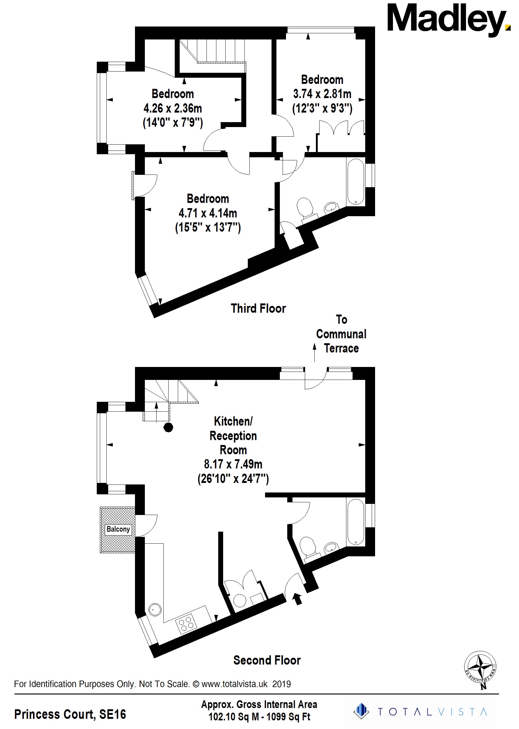 This duplex incorporates a well designed open plan reception, a fully integrated kitchen built to a high specification, a private balcony with superb City views, a family bathroom and a huge communal residents' only terrace. On the second floor, you will find a spacious master bedroom, a second double bedroom where both are connected via luxurious Jack and Jill bathroom and a third well-sized bedroom. There is storage throughout the property and plenty of natural lighting to enjoy.