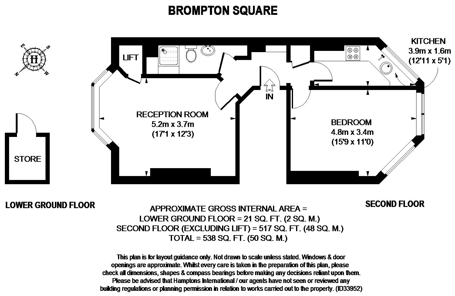 Offering stunning views of Brompton Square and Holy Trinity Brompton this convenient and yet quietly located one bedroom flat is very well presented and has direct lift access. The property features wood flooring in the reception room, a well proportioned bedroom and a modern kitchen and shower room. The flat is held on a share of the freehold and has a large secure lower ground floor storage vault.