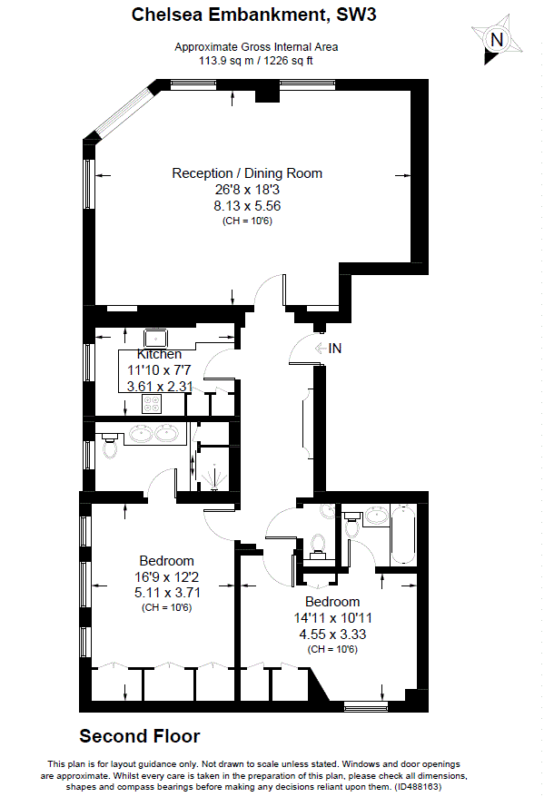The flat features a stunning corner aspect drawing room with 3m ceiling height, two generous double bedroom suites and wood floors throughout.
