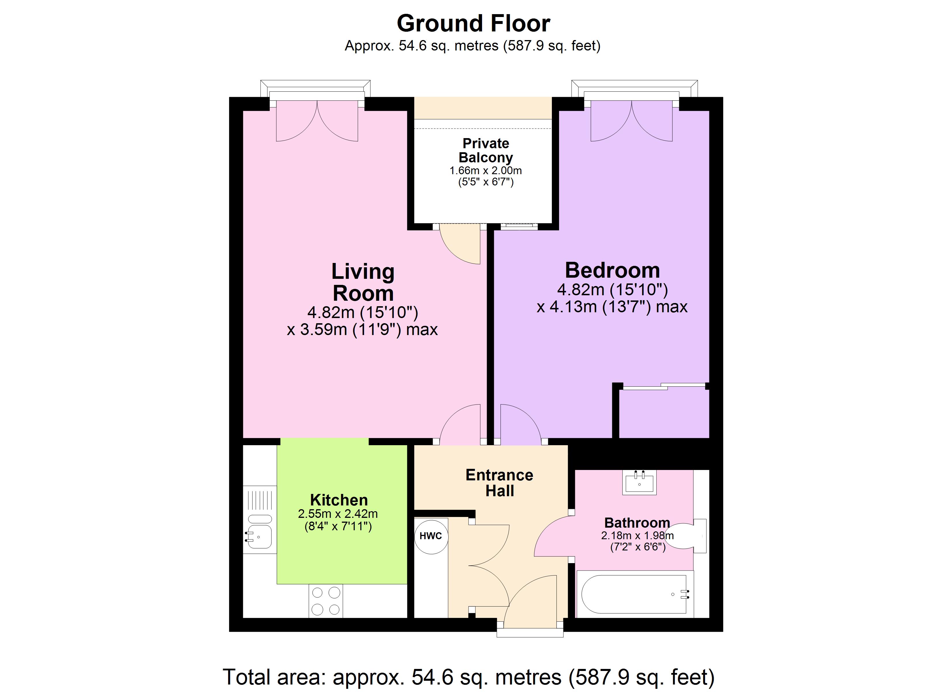 Private Balcony 5'5 x 6'7 (1.66m x 2.00m)
