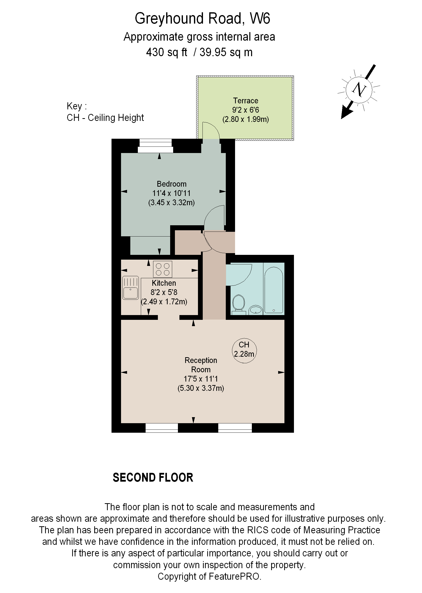 The flat comprises a large reception room at the front, with floor to ceiling windows, providing a well lit space. With good storage throughout, the flat offers a separate kitchen, a modern bathroom and a double bedroom with fitted wardrobes. Positioned at the rear of the flat, the flat benefits from a private roof terrace, perfect for those summer BBQs.