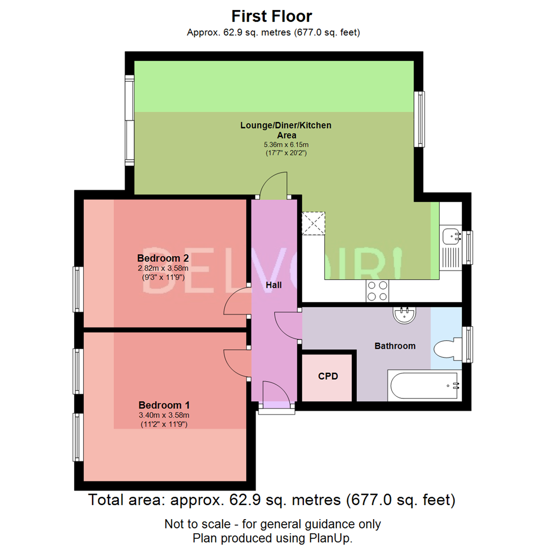 Entered from the end of the hallway, this attractive and spacious room, split into a lounge/dining room section and a kitchen area provides light, airy living accommodation extending to 20ft long. There are French doors with a Juliet balcony at one end of the living area with a uPVC double glazed window at the opposite end to let in plenty of sunlight.