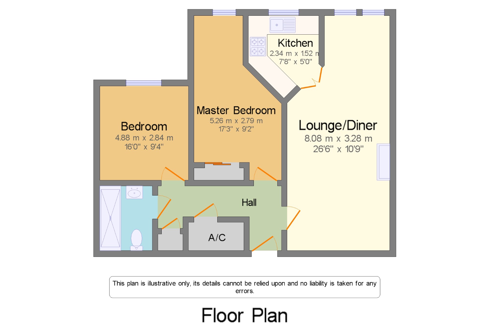 Master Bedroom 17'3" x 9'2" (5.26m x 2.8m). Double glazed uPVC window facing the front overlooking the sea. Electric heater, carpeted flooring, fitted wardrobes.