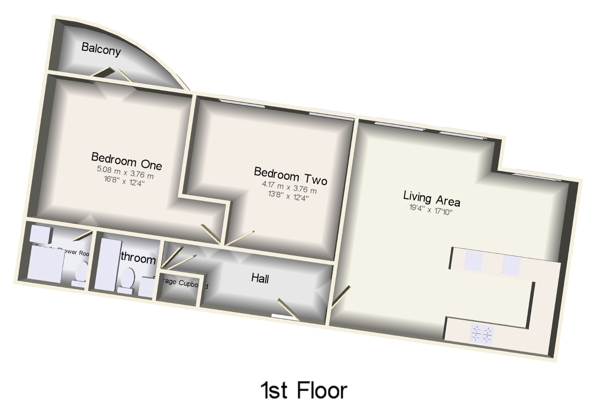 Bedroom One16'8" x 12'4" (5.08m x 3.76m). Double bedroom; double glazed door, opening onto a balcony. Electric heater, painted plaster ceiling, ceiling light.