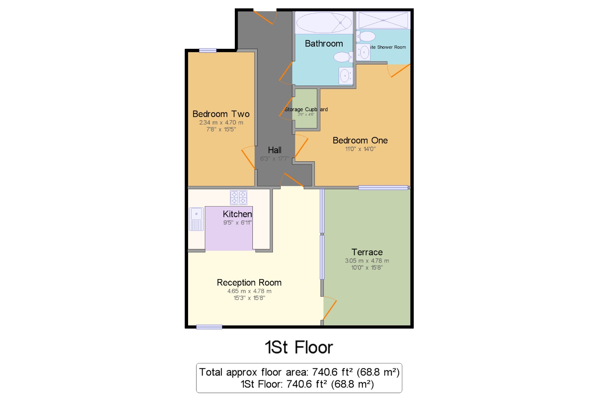 Bedroom Two7'8" x 15'5" (2.34m x 4.7m). Double bedroom; double glazed window. Electric heater, carpeted flooring, ceiling light.