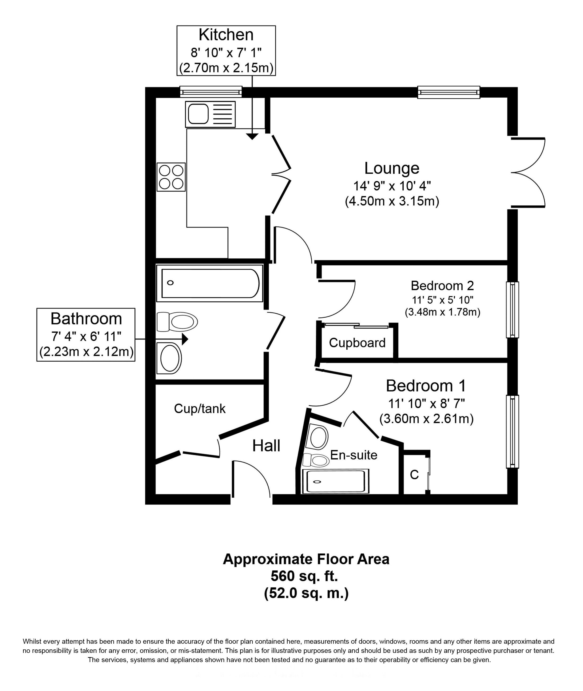 Spacious bedroom complete with En-suite shower room. Double glazed window to the front, modern fitted wardrobes with sliding doors, electric wall heater, ceiling light point and carpet floor covering. There is a door giving access to the en-suite.