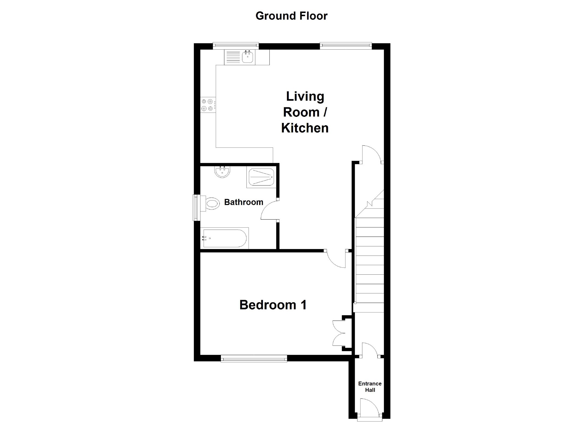 Double glazed uPVC window facing the rear. Electric heater and electric fire, laminate flooring. Roll edge work surface, fitted wall and base units, stainless steel sink with drainer, integrated electric oven, integrated electric hob, overhead extractor, space for washing machine, fridge and freezer.
