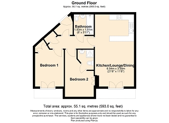 Open plan lounge with double glazed doors leading to the balcony, radiator, carpeted, tv point.Modern kitchen having a range of matching walland base units, one and a half bowl stainless steel sink with mixer taps, electric oven and four ring gas hob, cushion tiled flooring, plumbing for washing machine, double glazed window to side elevation, radiator.