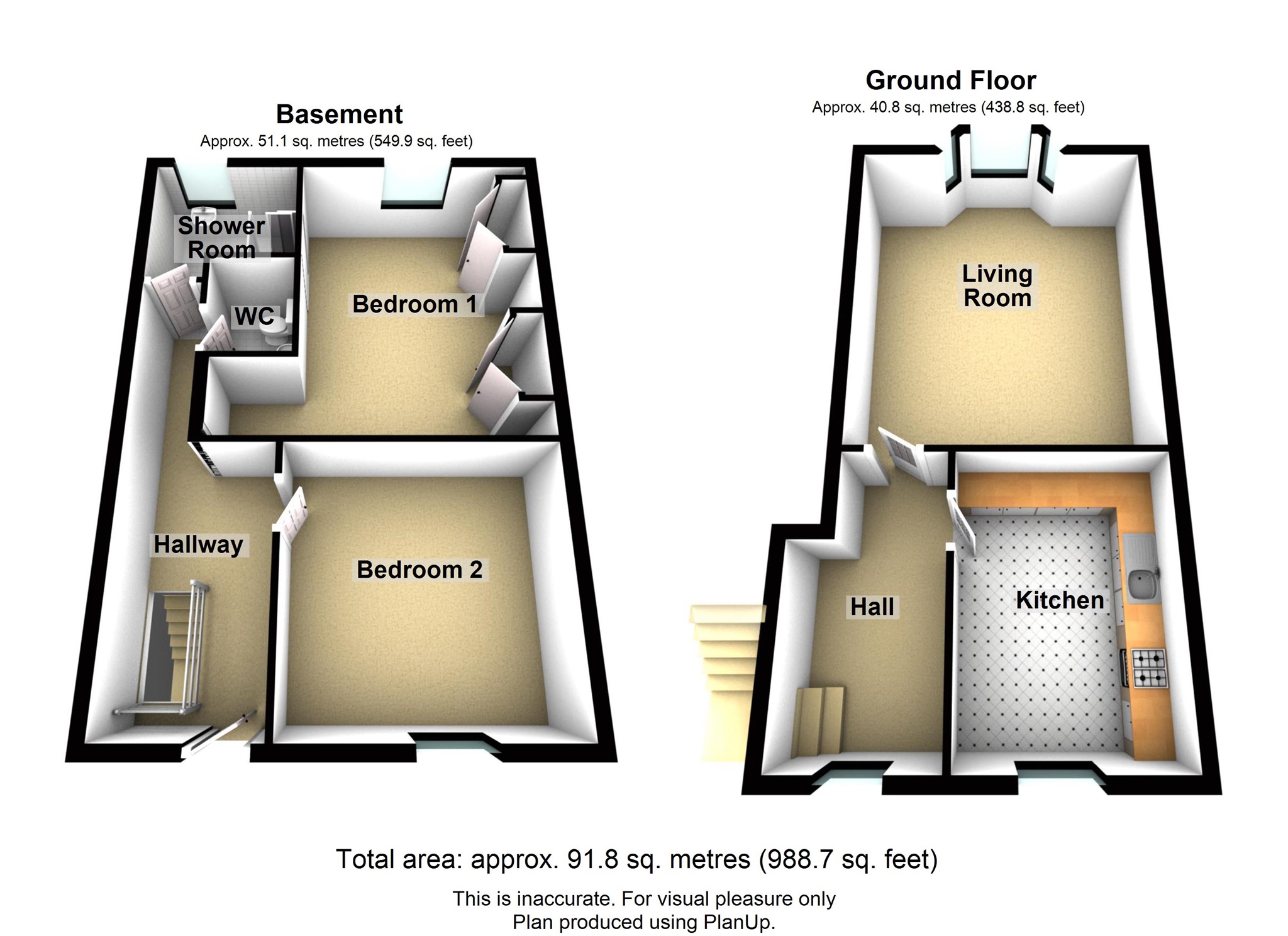 Enter via wooden door into hallway doors leading to bedroom one and two, Shower room and Wc. Stairs leading to lower ground floor.
