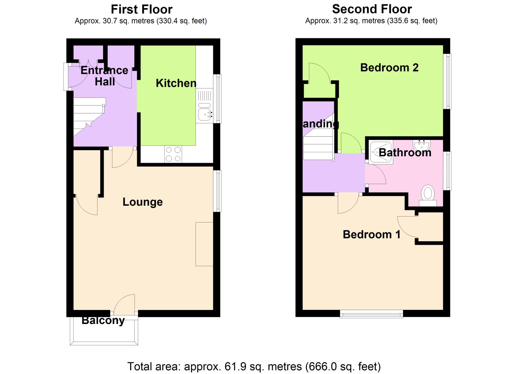 The Property is accessed via a Communal entrance with security intercom, located on the first floor Entrance Hall with storage cupboards, Kitchen, Lounge with Balcony and walk in store, to the first floor are two double bedrooms and bathroom, Outside the property has communal grounds, accommodation 665 sq ft