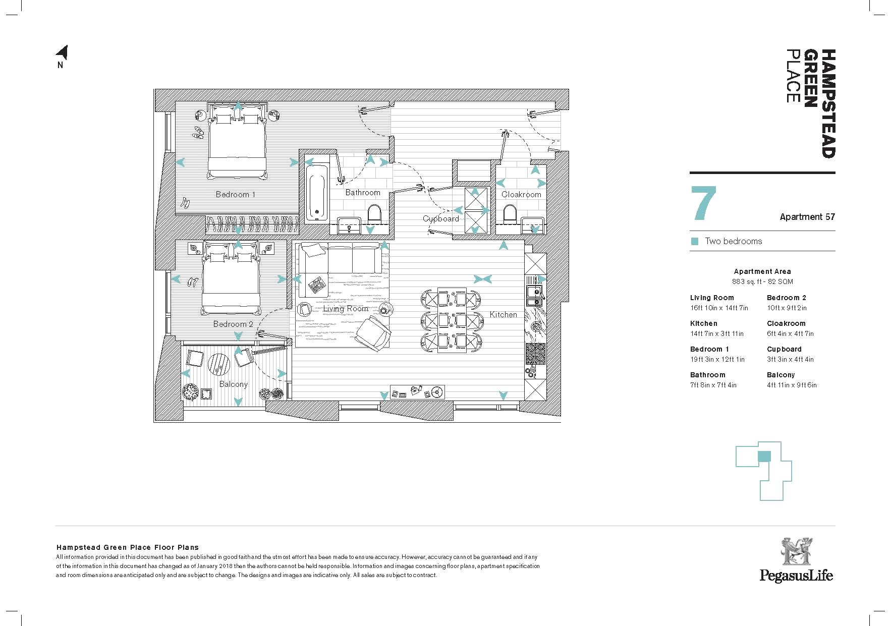 " Apartment 57 is an excellent two bedroom apartment (883sqft) with a balcony situated on the seventh floor of Hampstead Green Place and features an openplan layout, stunning views of the london skyline, and floor to ceiling windows throughout.
