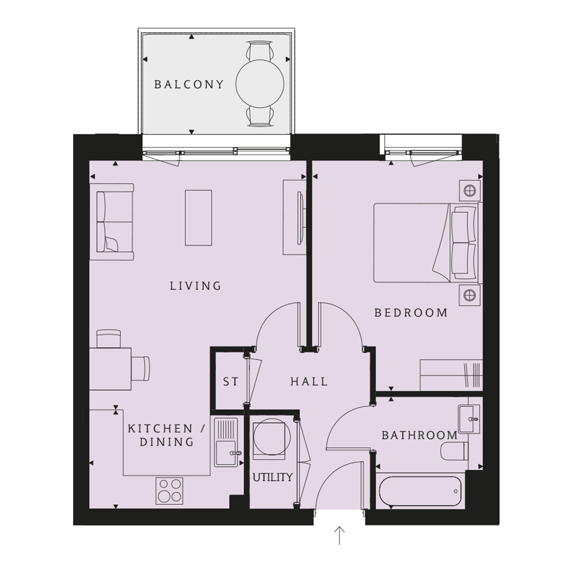 A one-bedroom apartment on the third floor featuring an open plan living/dining area with access to a private balcony and the fitted kitchen comes with fully integrated appliances. Further benefits include a bathroom with Grohe brassware, storage space and underfloor heating throughout. Totalling 538 sq ft / 50 sq m.