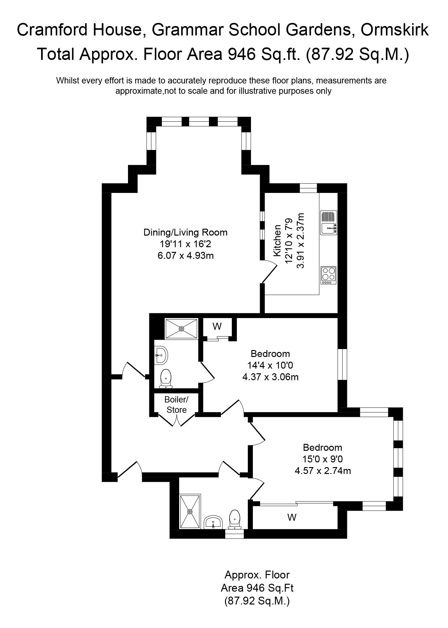 This simply stunning two bed first floor luxury apartment is sure to invoke interest from a broad range of buyers, whether it be the young professional looking for a trendy pad in which to relax after a hard day in the office, those whose youngsters have flown the nest and are looking to down-size, or perhaps those who spend a lot of time away with work or with a holiday home, and require a secure, low maintenance property. Whatever the motivation for one’s search, this impressive home will not disappoint, with its light-filled living spaces and tasteful décor, whilst the spacious accommodation extends to in excess of a generous 940 square feet, within one of the area's most prestigious addresses. The property is nestled at the heart of the highly desirable and prestigious Ruff Lane conservation area, an area of special architectural and historic interest, the make-up of which is considered worthy of protection, and one only needs to survey this homes surroundings for it to become immediately apparent as to why this location is deemed worthy of such accolades, with its pleasing blend of historical homes, open spaces and landmarks. The location also affords a vast array of convenient benefits, within walking distance of the abundance of shops and amenities within the historic market town of Ormskirk, offering an eclectic range of boutique shops and high street stores, whilst excellent transport links via the nearby M58 and the railway network, the latter of which is again within walking distance, ensures ease of access to major cities such as Manchester and Liverpool. The development itself is renowned for its precise attention to detail and exceptional standards of finish, having been skilfully designed to blend iconic buildings with contemporary builds, each housing a number of executive apartments, with beautifully maintained communal areas which are reminiscent of a boutique hotel, rather than a residential building. This apartment in particular occupies a lovely position within the building, as well as having been fastidiously maintained and improved, with our clients having worked abroad for considerable periods of time, ensuring this home still feels as new as the day it was built and in flawless condition. One enters the building via the secure video entry system, and proceeds via the communal areas up to the first floor, where one can access the private living spaces, entering via the sizeable reception hallway with its useful storage cupboard, before proceeding through into the vast 19’ open plan lounge/diner, which enjoys a fabulous contemporary feel; a lovely environment in which to relax or entertain, complete with quality wooden flooring and simply bursting with light via the large feature bay window. The off-lying 12’ kitchen is separate enough to ensure those cooking smells and noisy washing machines are contained, yet sociable by way of the windows through into the main living room, being very well appointed and fitted with a range of wall and base units in white, with contrasting laminated work surfaces and equipped with a host of integrated appliances, including electric oven, halogen hob with extractor canopy, fridge/freezer, dishwasher and washing machine. The two double bedrooms are both of a fantastic size and benefit from quality fitted wardrobes, whilst our clients cleverly amended the original layout to ensure they both enjoy en-suite facilities, with individual three piece en-suite shower rooms, one of which is also accessible from the hallway, which is useful when visitors drop by. This set-up allows a new owner to select their master bedroom, albeit most will no doubt choose the slightly larger 15’ room, which benefits from another delightful bay window. Externally, as well as the immaculate manicured lawns, residents can enjoy a real feeling of exclusivity and privacy, with the building approached via electronically-operated gates, which provide access to the car park, where one can access the allocated parking facilities. We would highly recommend an internal inspection to fully appreciate all that this home has to offer, including a care-free lifestyle and a wonderfully sociable and diverse community.