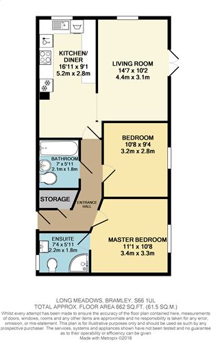 Situated at the head of a cul de sac is this well presented two double bedroom ground floor garden flat. The property benefits from gas central and double glazing. The living accommodation in brief comprises of; entrance hall, living room with French doors opening onto the delightful private garden, kitchen/diner, two bedrooms the master having an en suite shower room and bathroom. The kitchen has integrated appliances comprising of fridge, freezer, electric hob with extractor above, dishwasher and washer/dryer. Outside the enclosed garden has a patio area with the remainder being laid to lawn with established flower and shrub borders. Wooden gate from the garden provides access to the allocated and visitors parking spaces. The property is within easy reach of the local amenities in both Wickersley and Bramley, reputable local schools and the M18/M1 motorway network.