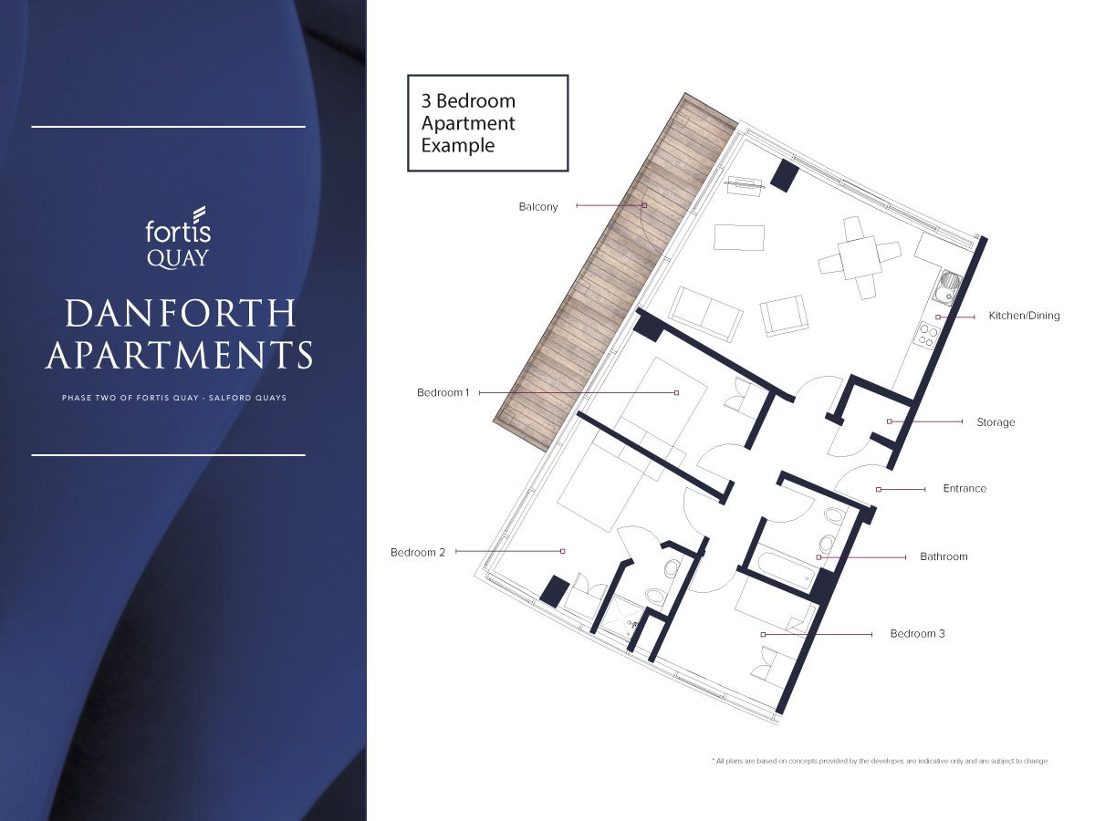 Danforth Apartments make up Phase 2 of the landmark Fortis Quay development and this 3 Bed Apartment on the 10th Floor of the 15-storey tower will be very popular with the large number of young professionals who live and work in Salford Quays.