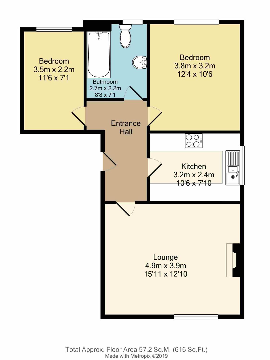 The property in brief comprises: Well proportioned lounge with fire surround and living gas fire, letting in light from the large wood double glazed sash window. Pleasant kitchen with roll top worktops, stainless steel sink, integrated fridge/freezer, gas hob, oven, and space for washer & dryer. Boiler in kitchen with GCH throughout. Two good sized bedrooms looking out onto the rear of the property both with laminate flooring. The bathroom is a generous size & benefits from a tiled floor, part tiled walls, bath with hand held shower, shower screen, toilet & hand wash basin.