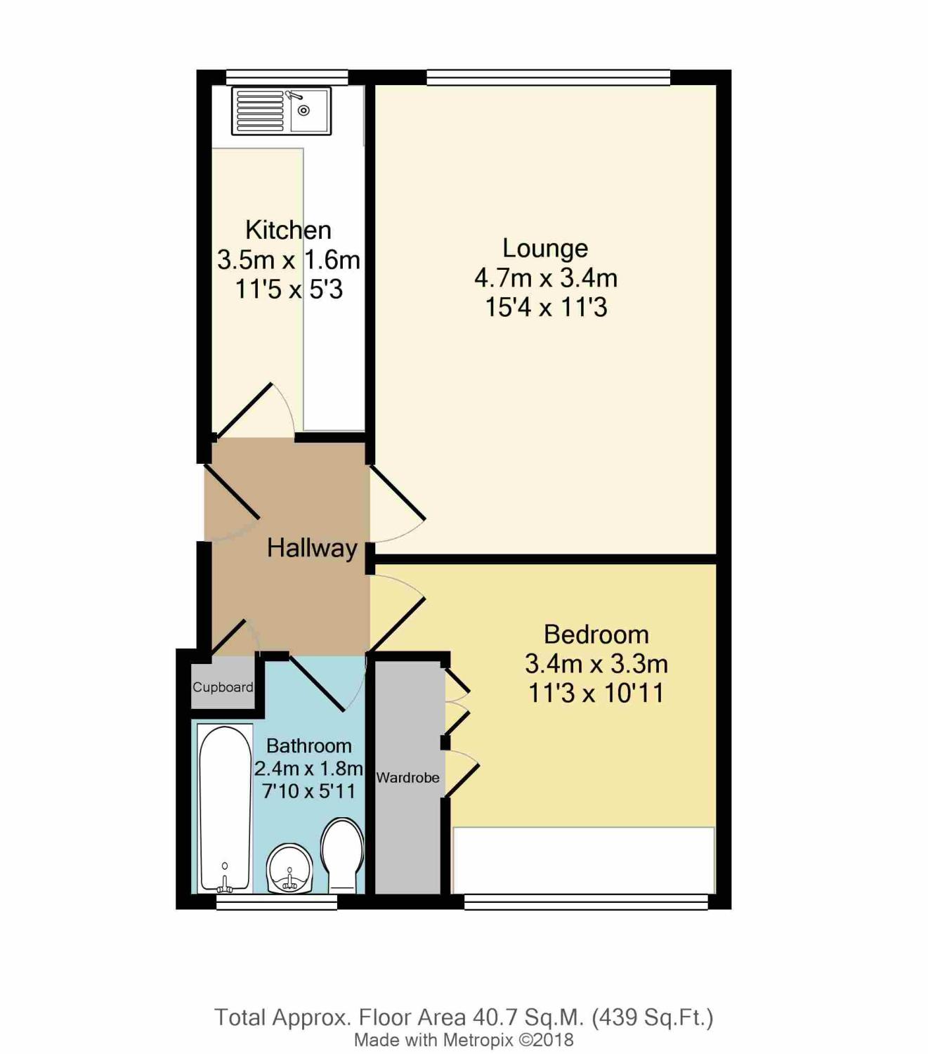 The accommodation in brief comprises: Communal entrance with stairs rising to the first floor accommodation, entrance hall with storage cupboard and loft access, front facing lounge with laminate to the floor, kitchen with a range of wall and base units with cooker point, space and plumbing for an automatic washing machine and laminate to the floor, double bedroom having a range of built in wardrobes, draws and laminate to the floor and bathroom having a three piece suite in white comprising: Wash hand basin, low flush wc and bath with electric shower above, tiling to splash backs and floor.