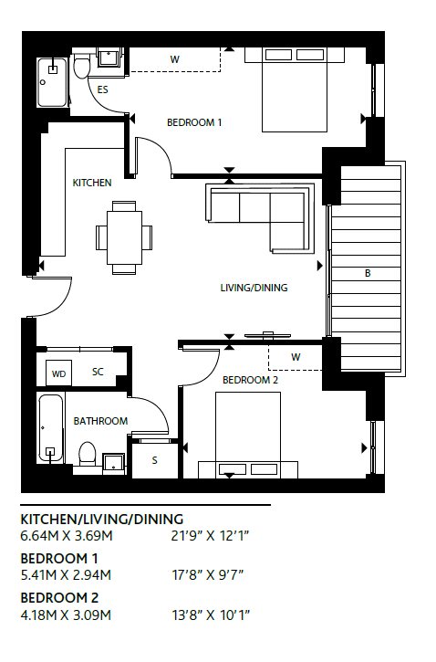 A 756 sq. Ft. 2 bedroom / 2 bathroom apartment located on the 2nd floor with a benefit of a private balcony located in the vibrant thames-side town is this fantastic new London Square development of Staines upon Thames.